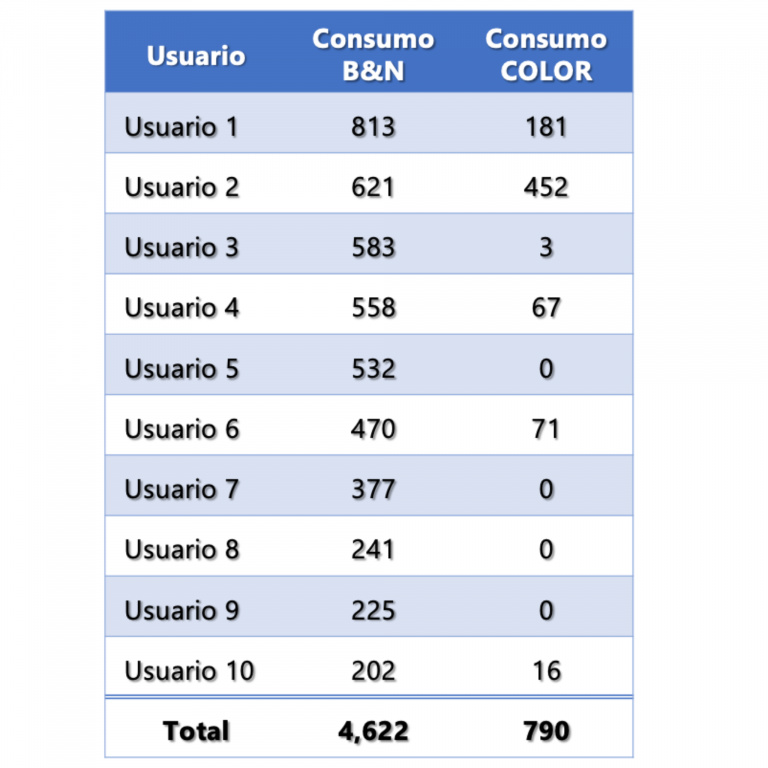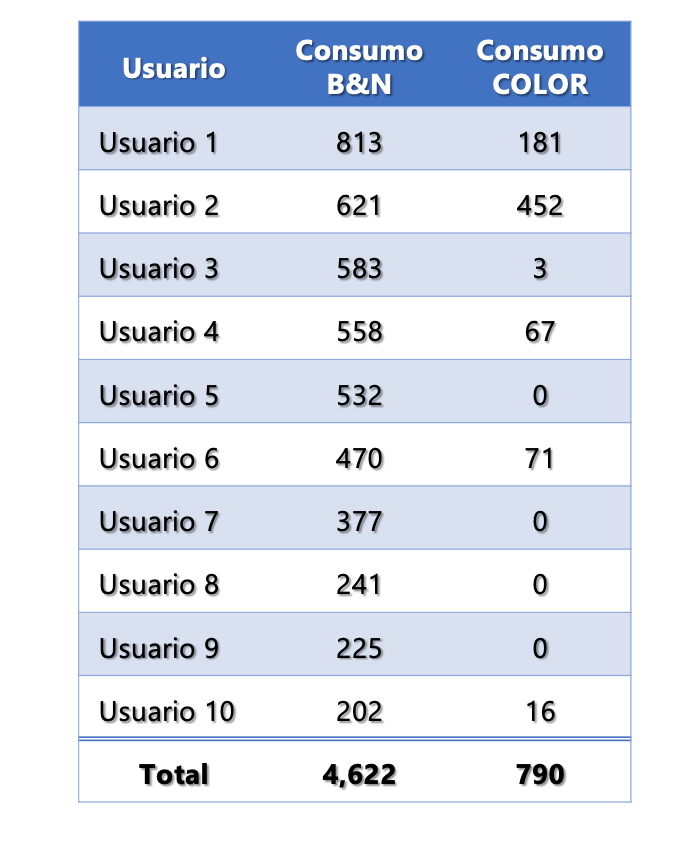 Los equipos SHARP permiten acceder a un registro de trabajos históricos por usuario, en el cual, el administrador puede obtener información precisa sobre los trabajos de cada usuario, optimizando los recursos de impresión.