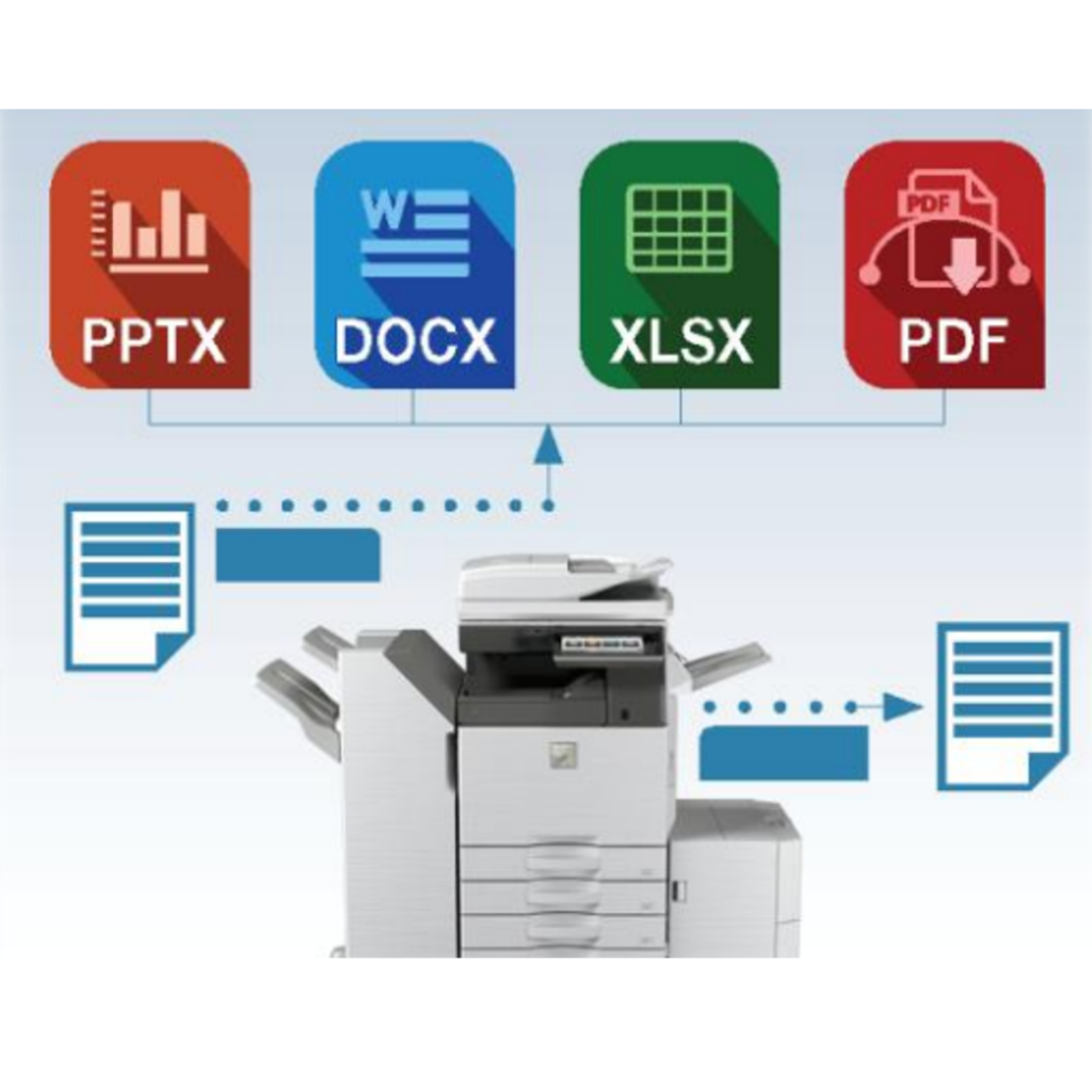 Gracias al OCR se puede escanear y convertir documentos fácilmente a formatos como Microsoft Word, PowerPoint y Excel, así como una variedad de formatos PDF como PDF con capacidad de búsqueda, PDF cifrado, PDF compacto, etc.